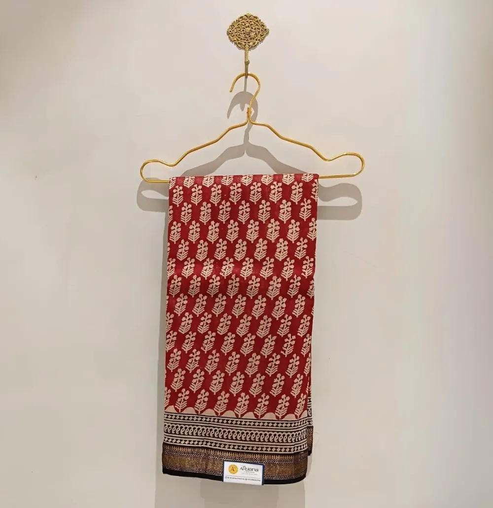 - Embrace elegance with this rich red Maheshwari cotton saree.