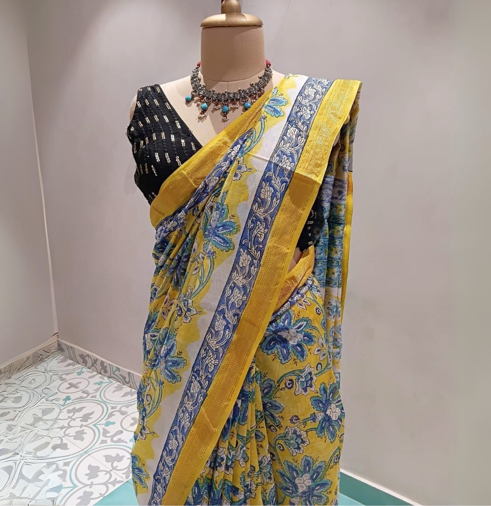 Home Saree Cotton Saree Maheshwari Cotton Saree Yellow