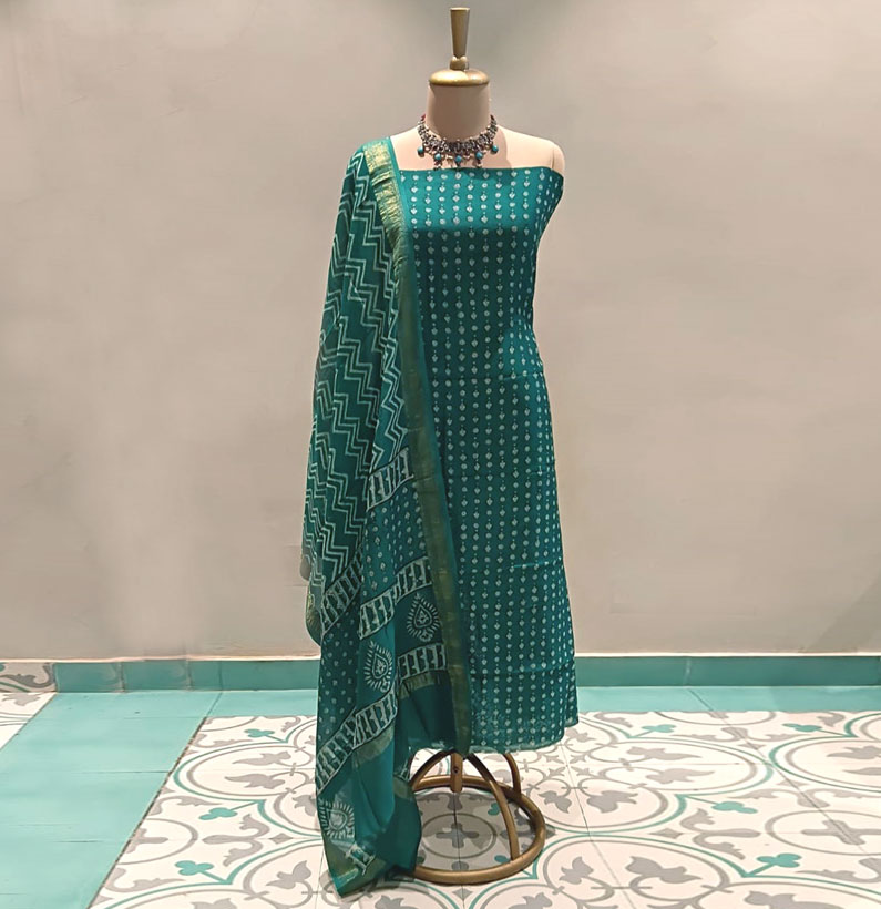 Home Suit Cotton Maheshwari cotton suit green