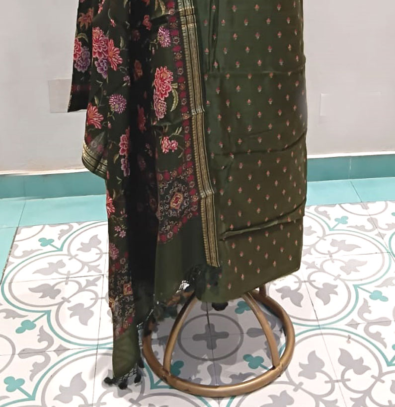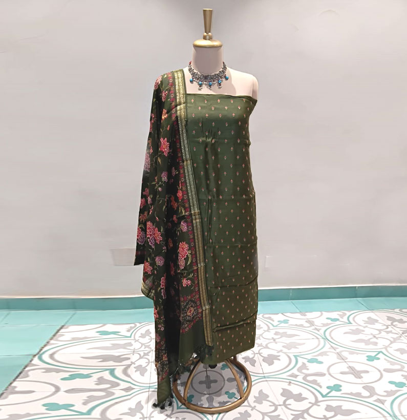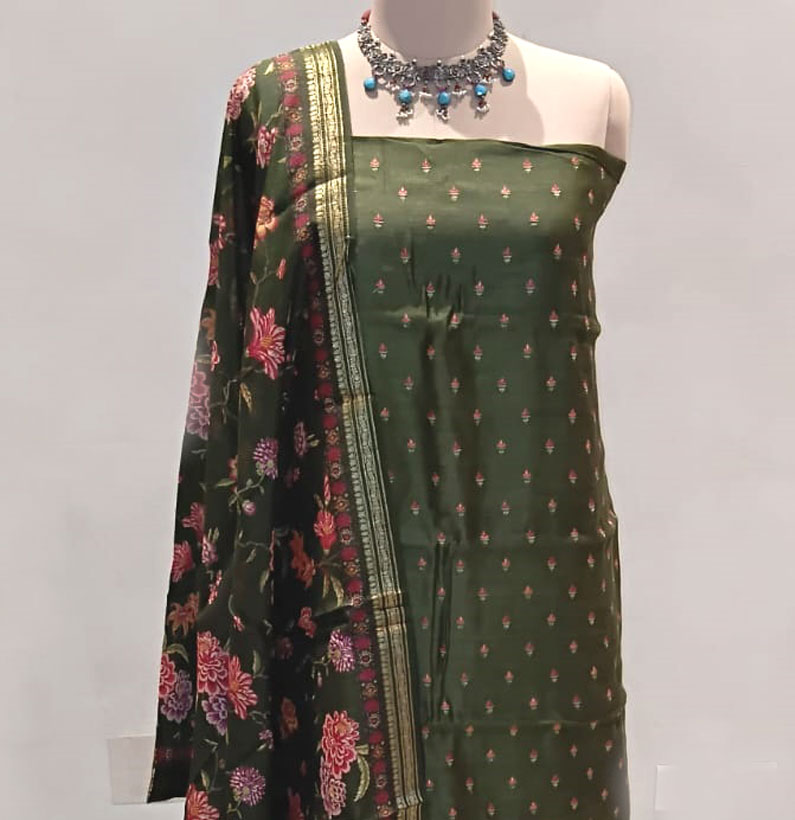 Be the first to review “Moonga silk embroided suit olive green” Cancel reply