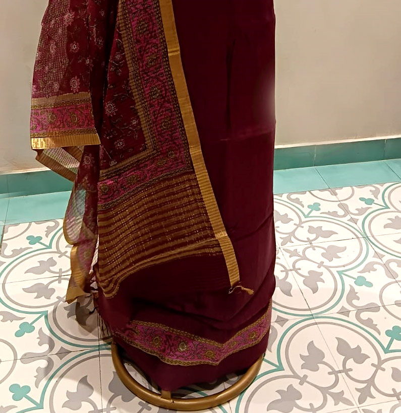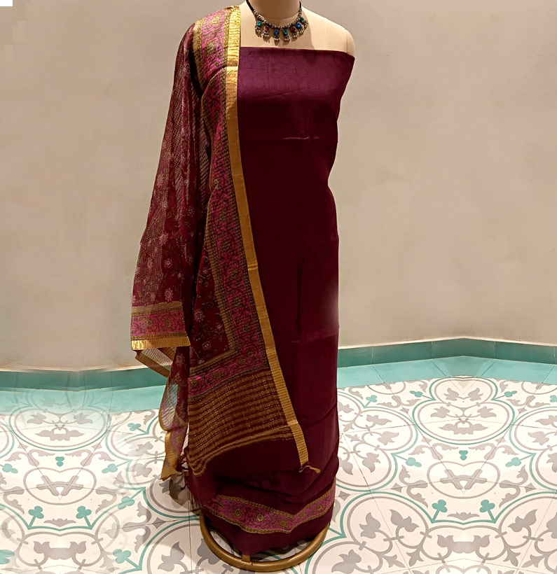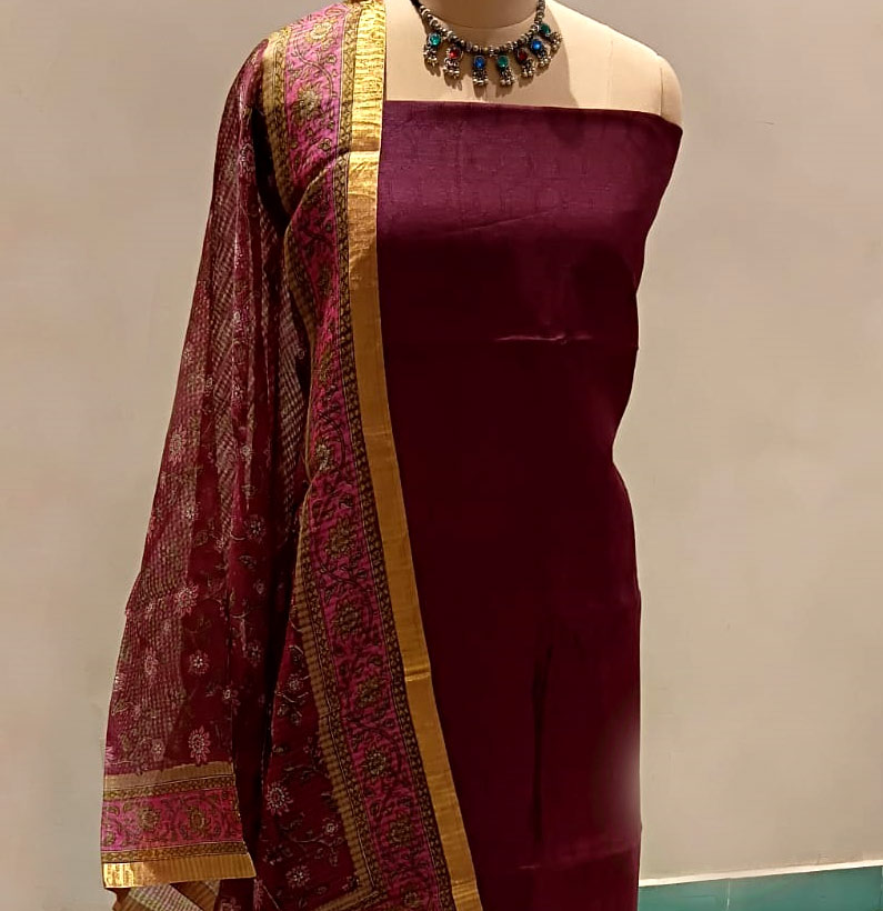 Be the first to review “Moonga silk printed suit dark wine” Cancel reply