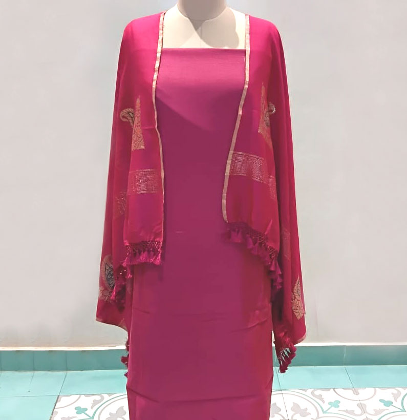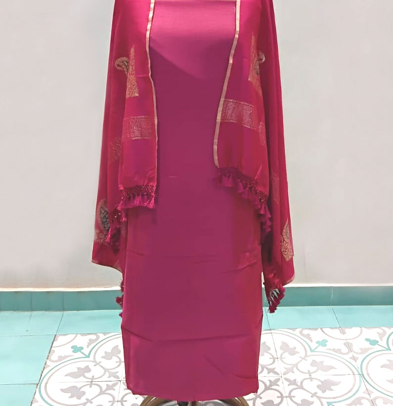 Be the first to review “Moonga Silk Suit Wine Colour”
