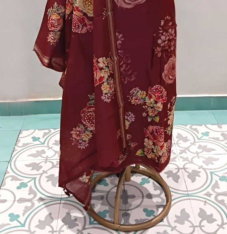 Be the first to review “Moonga silk with kantha work maroonish red” Cancel reply