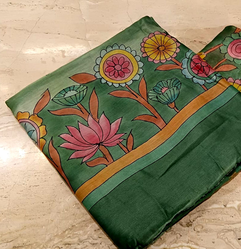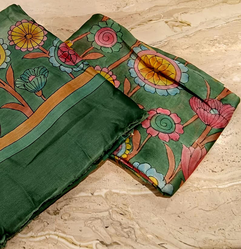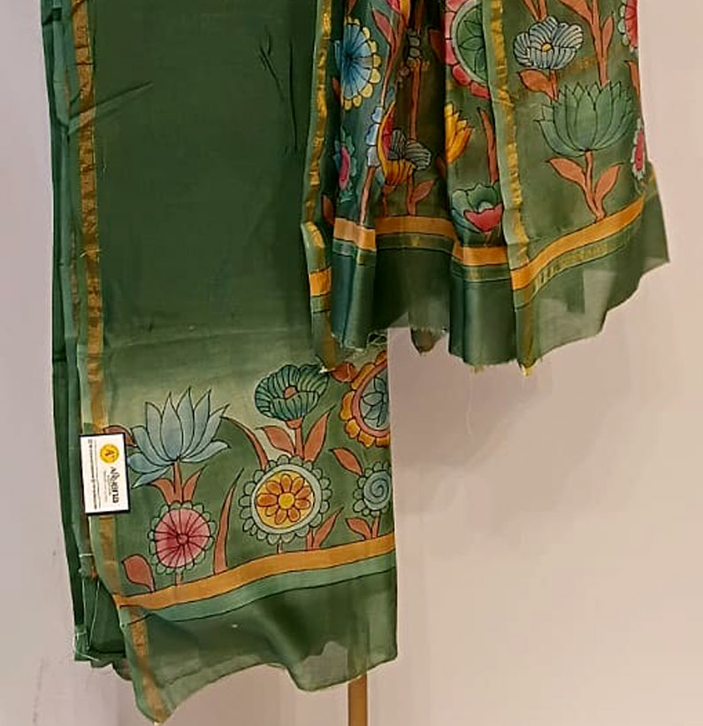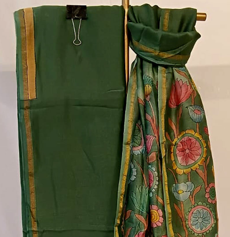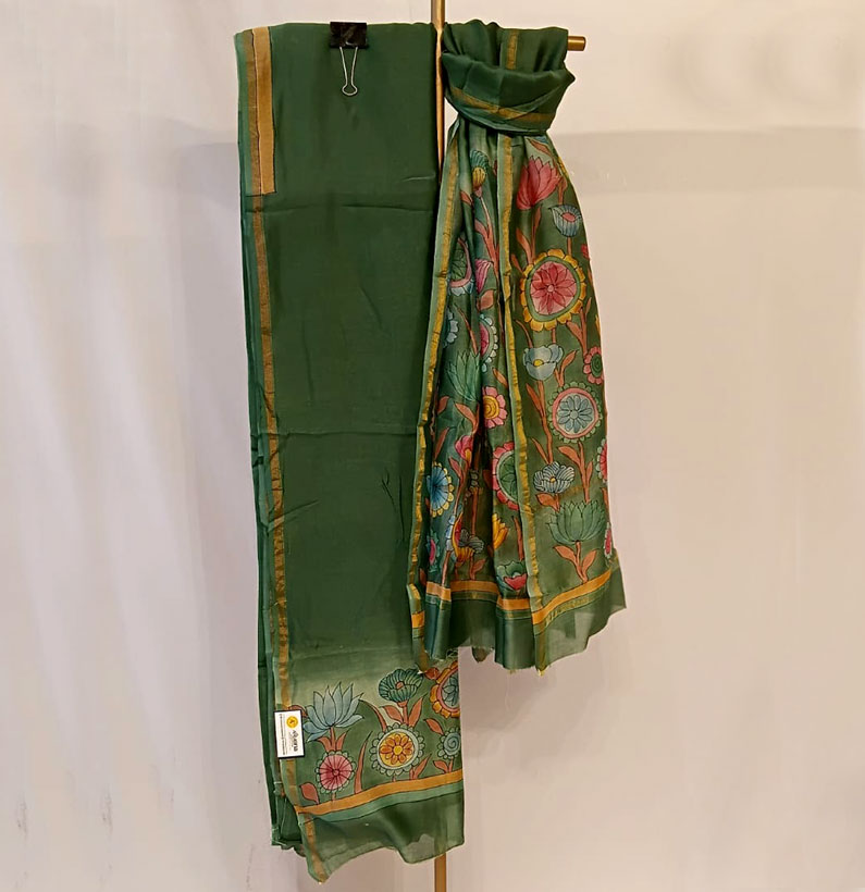 Mul Chanderi Kalamkari Suit Green