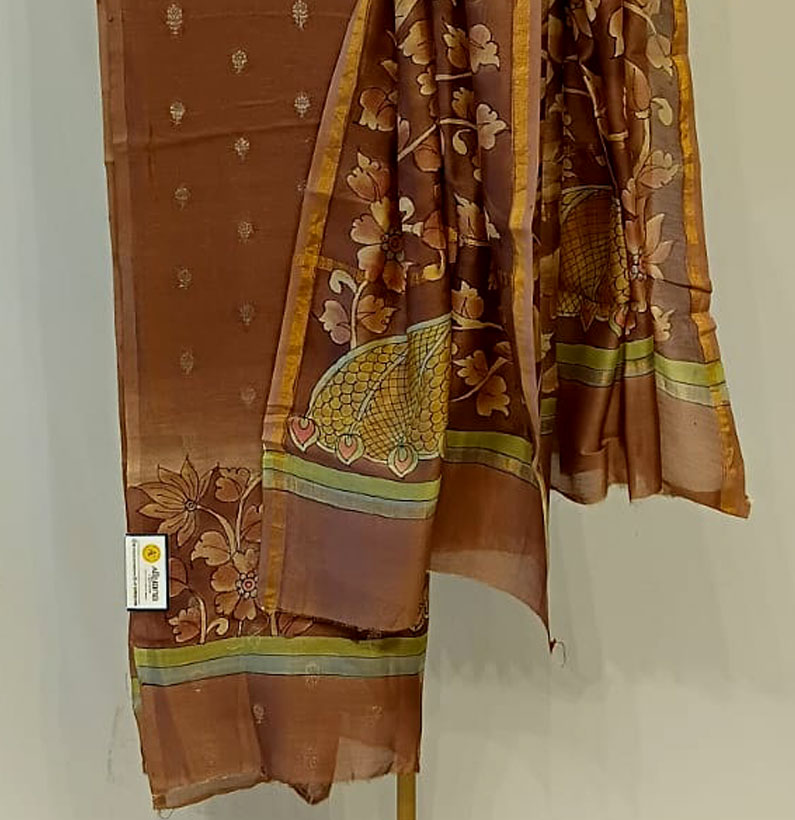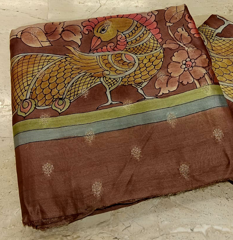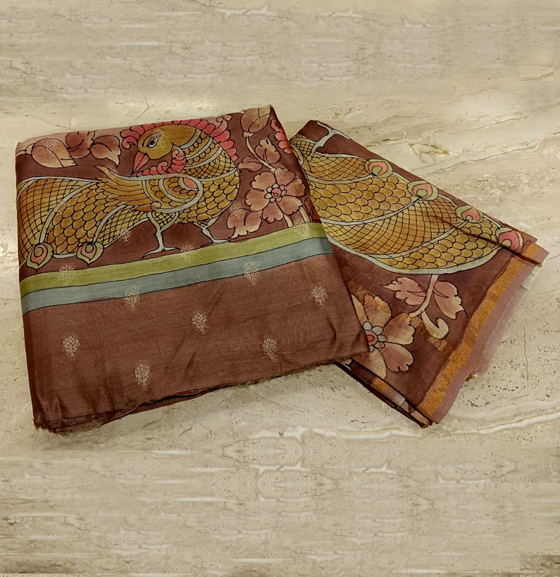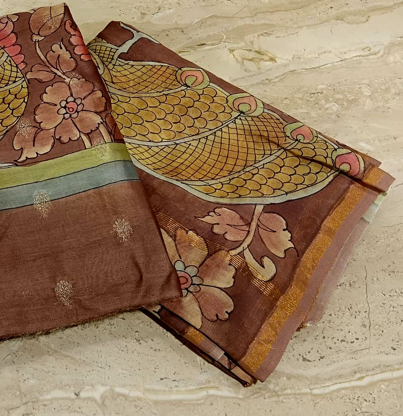 Mul Chanderi Kalamkari Zari Booti Coco Brown