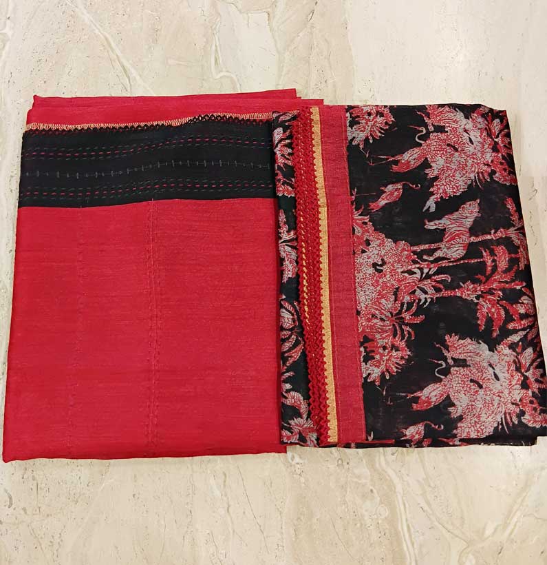 Home Suit Silk Munga Silk Suit Red & black