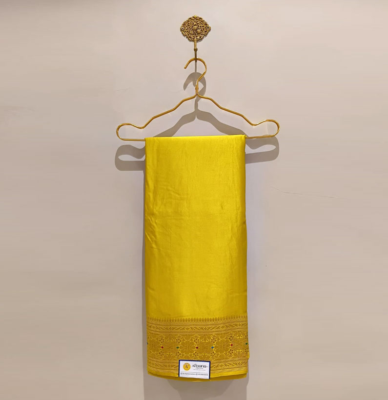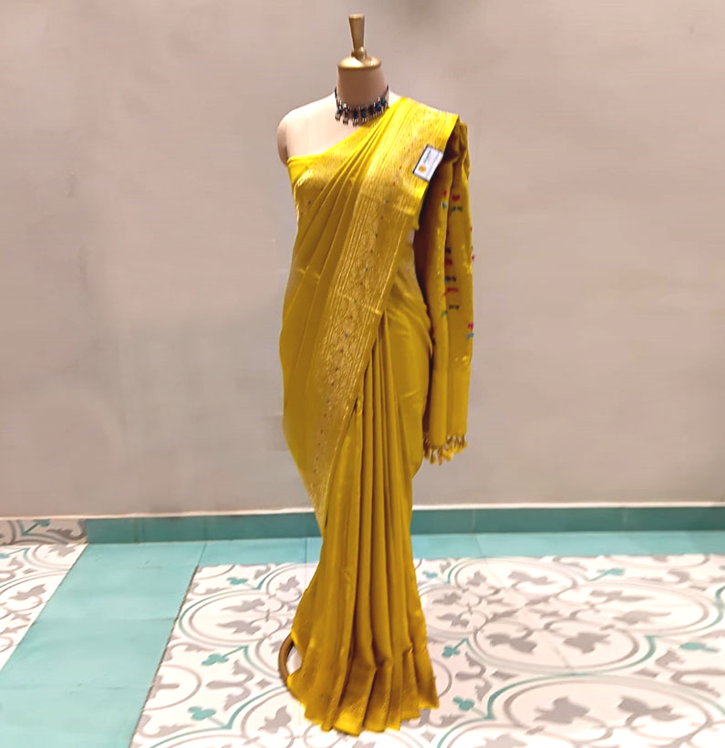 Mushroo saree multi mina mustard yellow