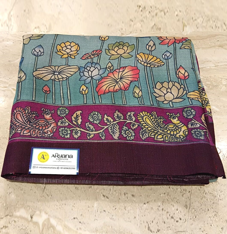 Home Saree Silk Pashimna tussar saree sea blue