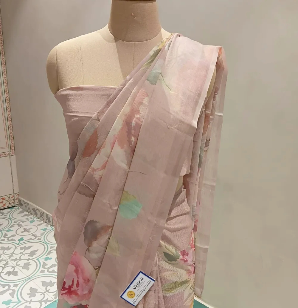 - Pure Chiffon saree in badami pink with a soft texture too.