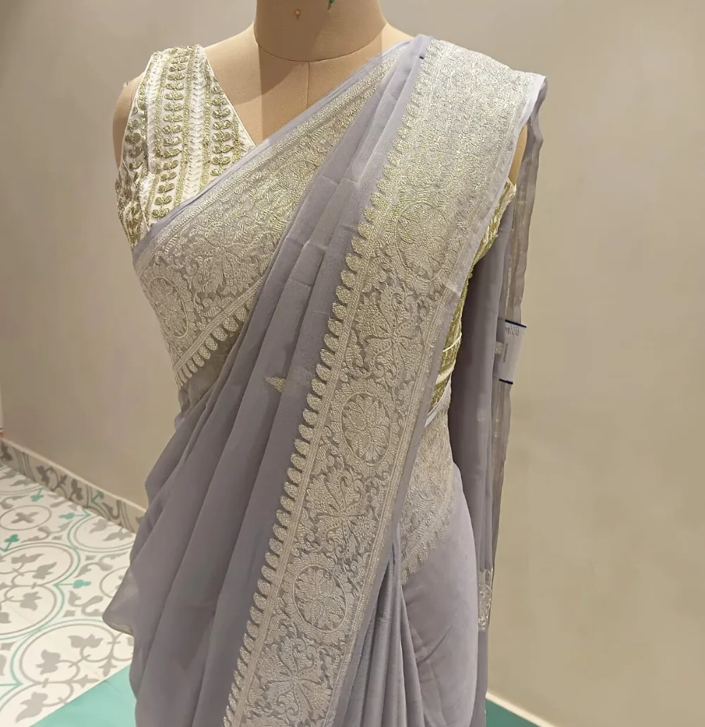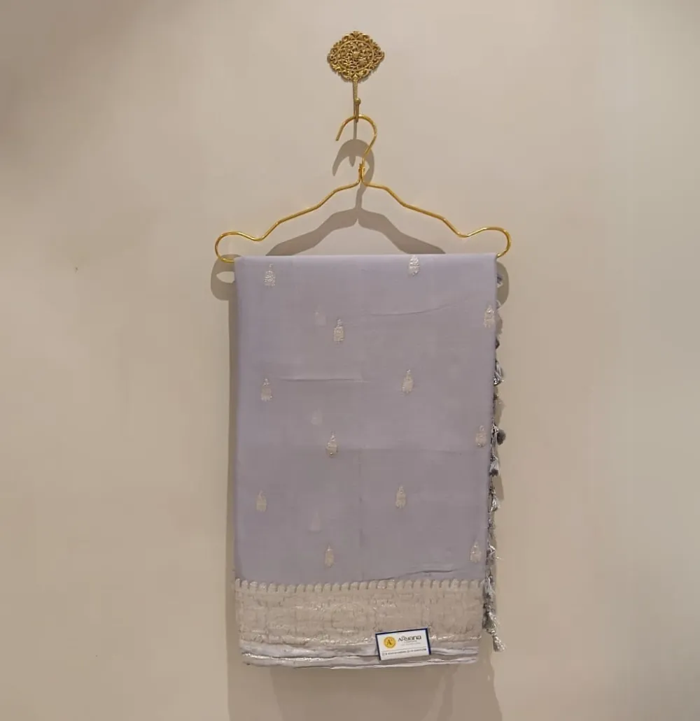 - Silver grey chiffon with a hint of shimmer for a chic touch too.