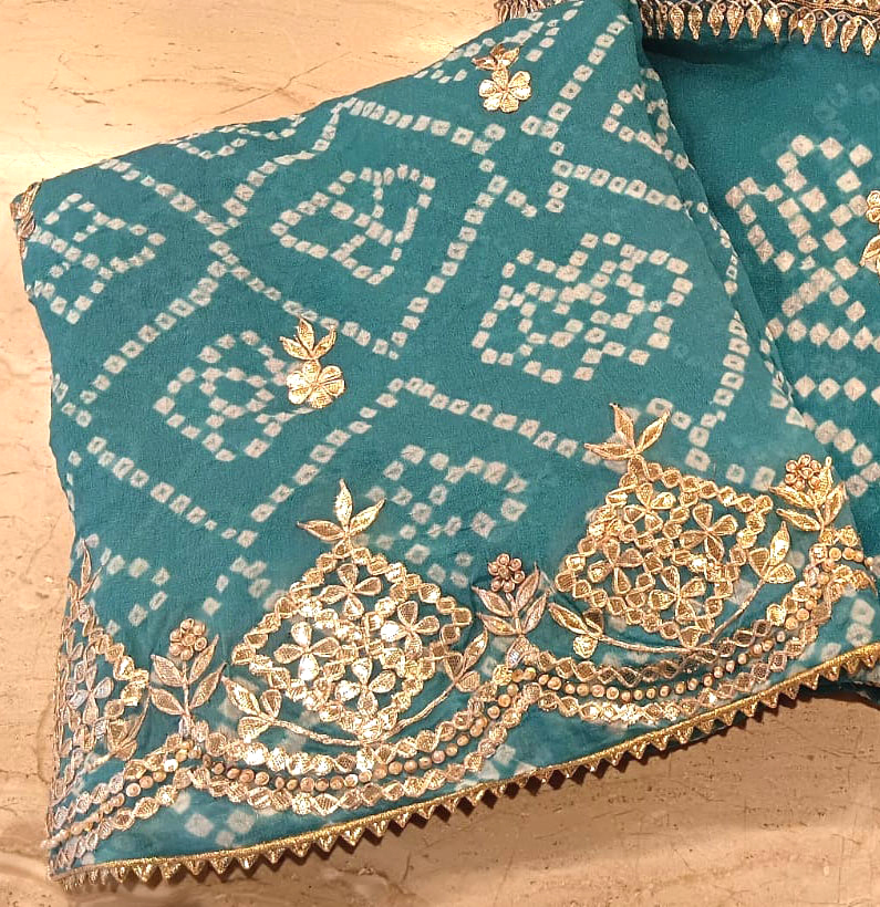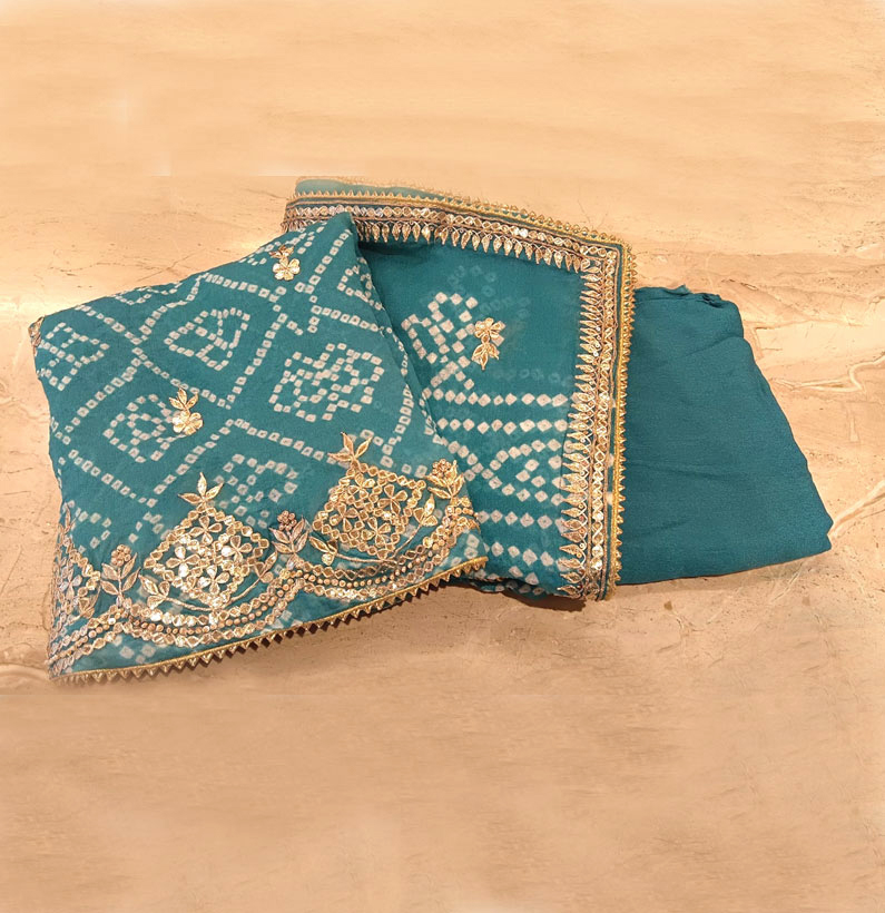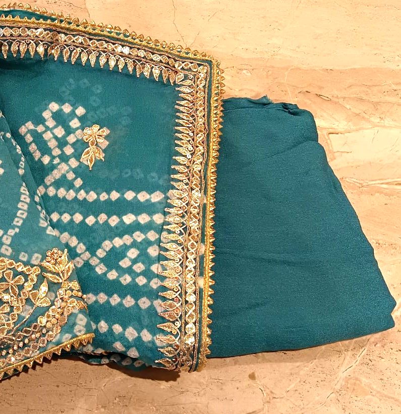 Pure Georgette Bandhni Gotta Patti Suit English Blue