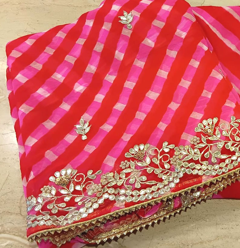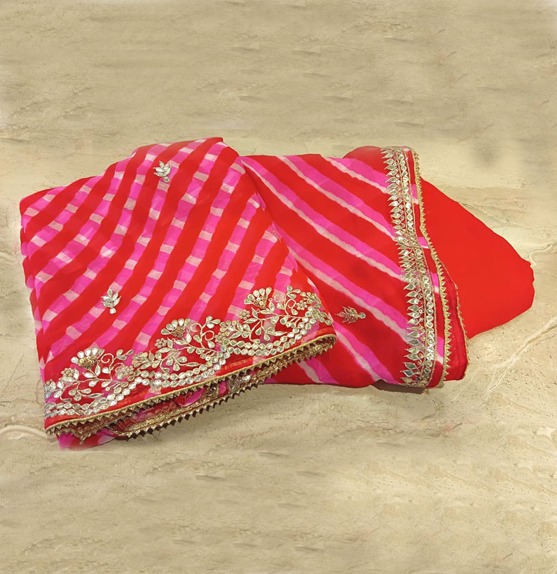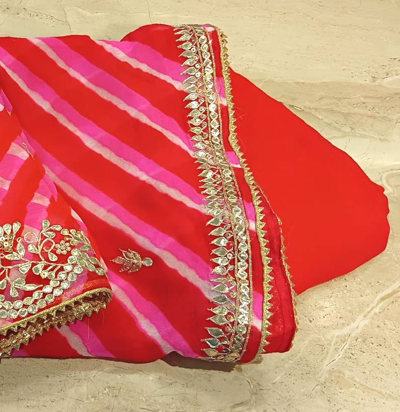Pure Georgette Lehariya Gotta Patti Suit Red And Pink