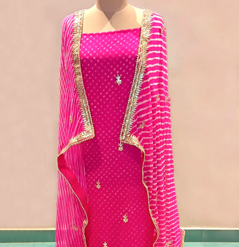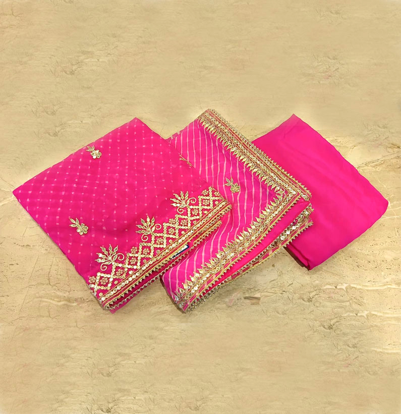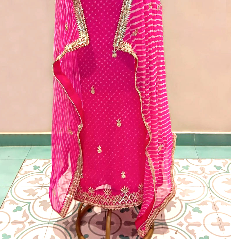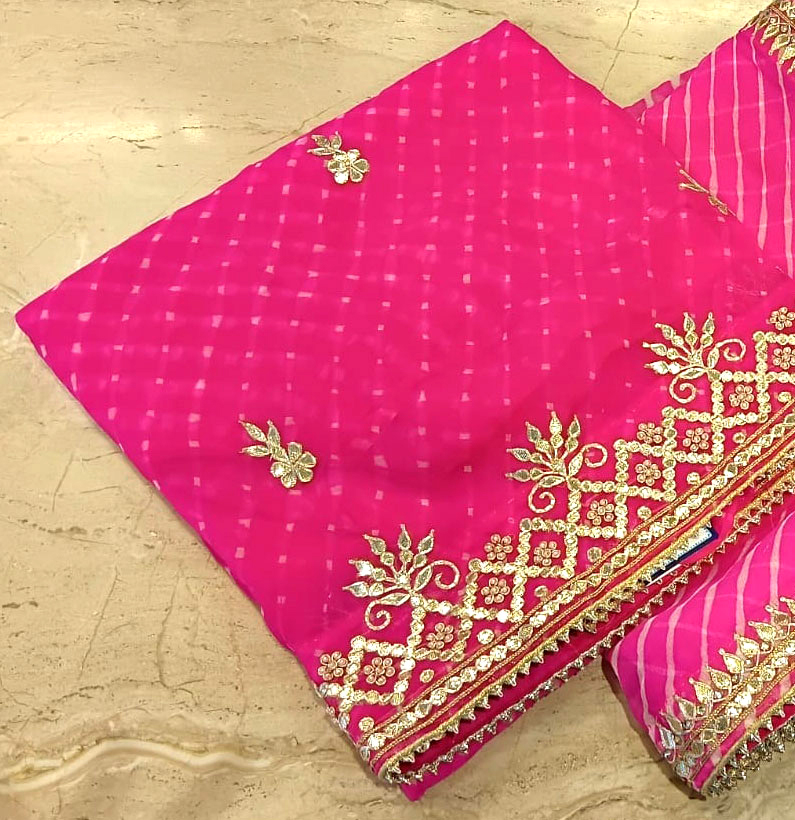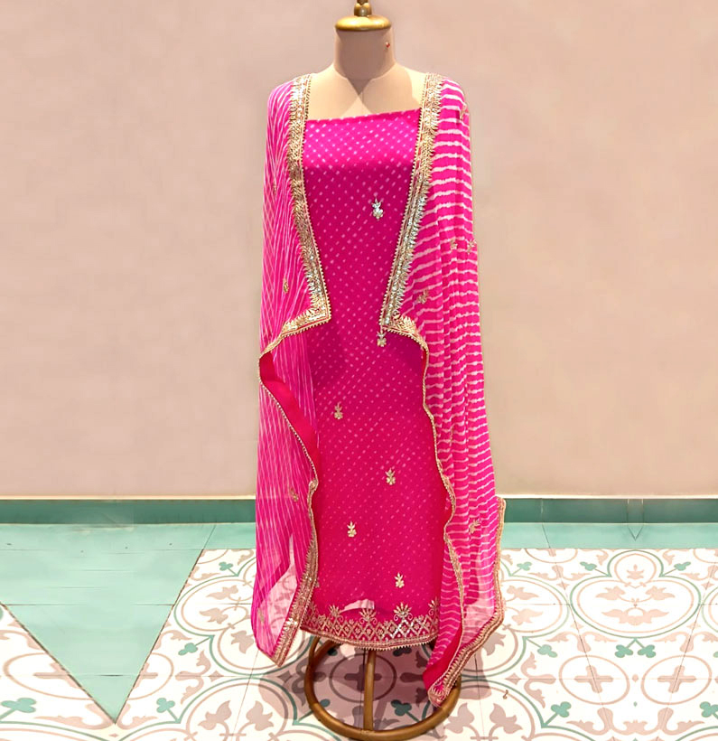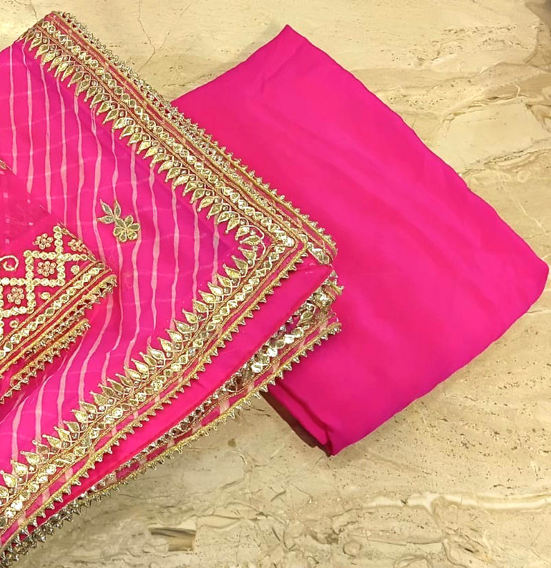 Pure Georgette Mothra Lehriya Gotta Patti Suit Hot Pink