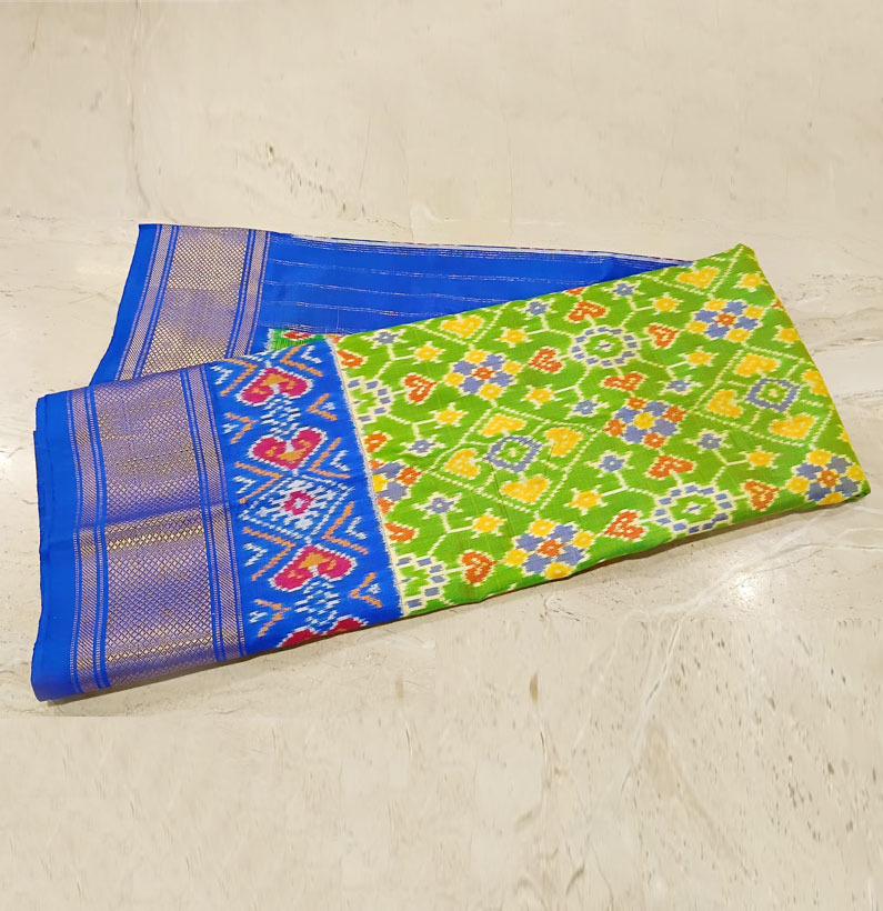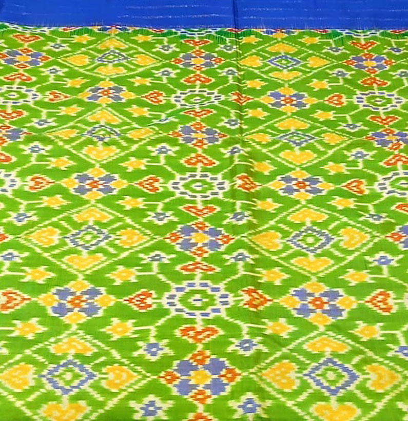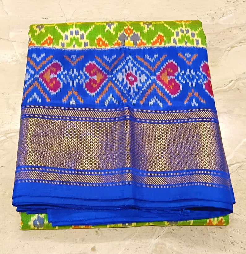 Pure silk ikkat saree parrot green