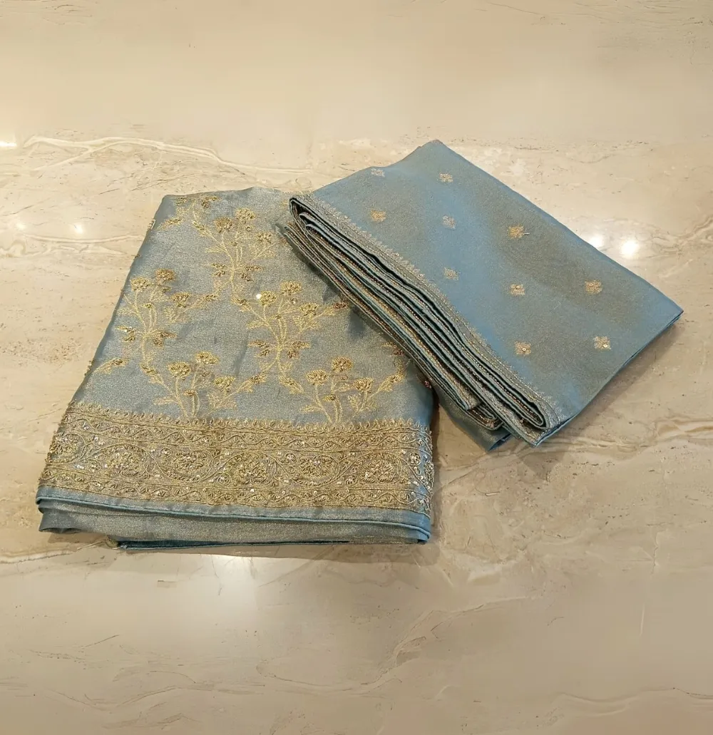 Home Suit Silk Tissue Banarasi Embroidery Suit Zardozi Work Ice Blue