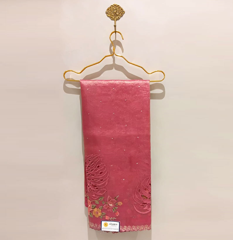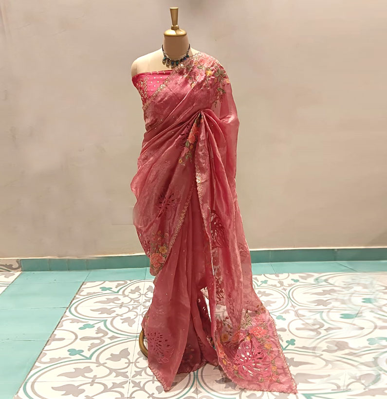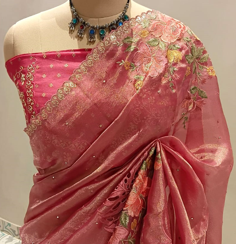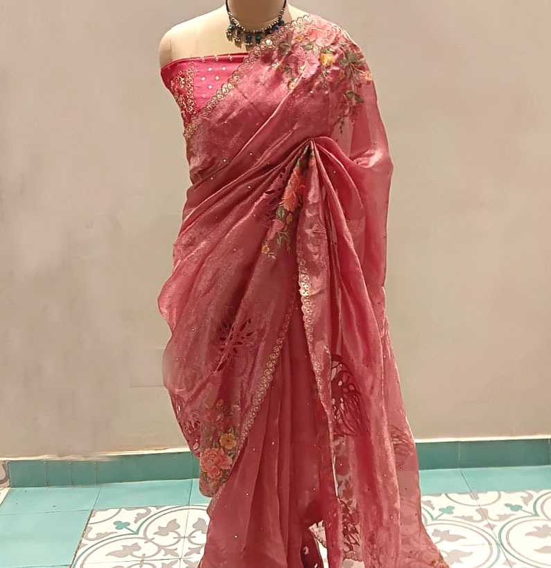 Tissue designer saree Onion pink
