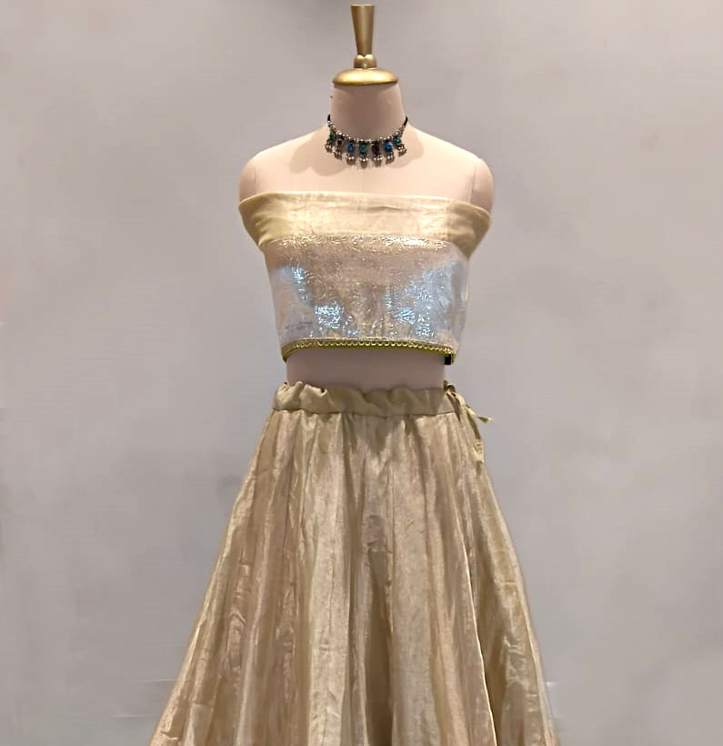 Tissue dull golden lehenga
