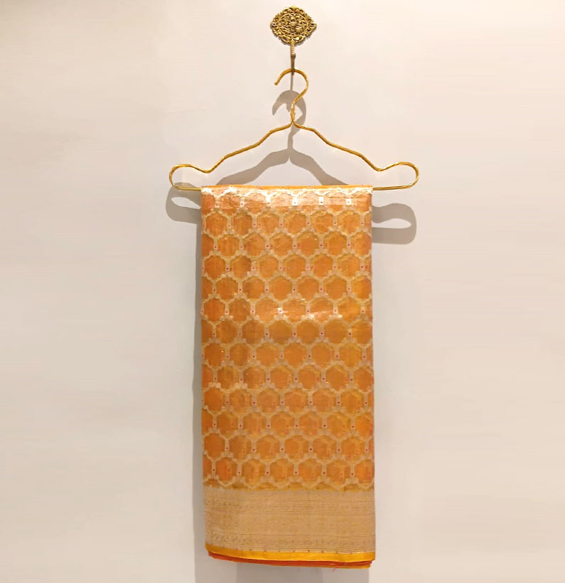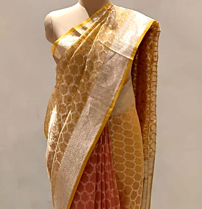 Tissue rangkart saree kadva orange