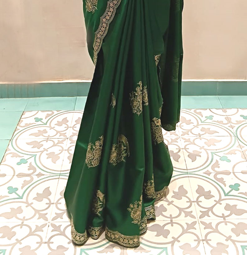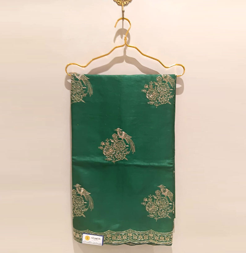 Tussar aari work saree green