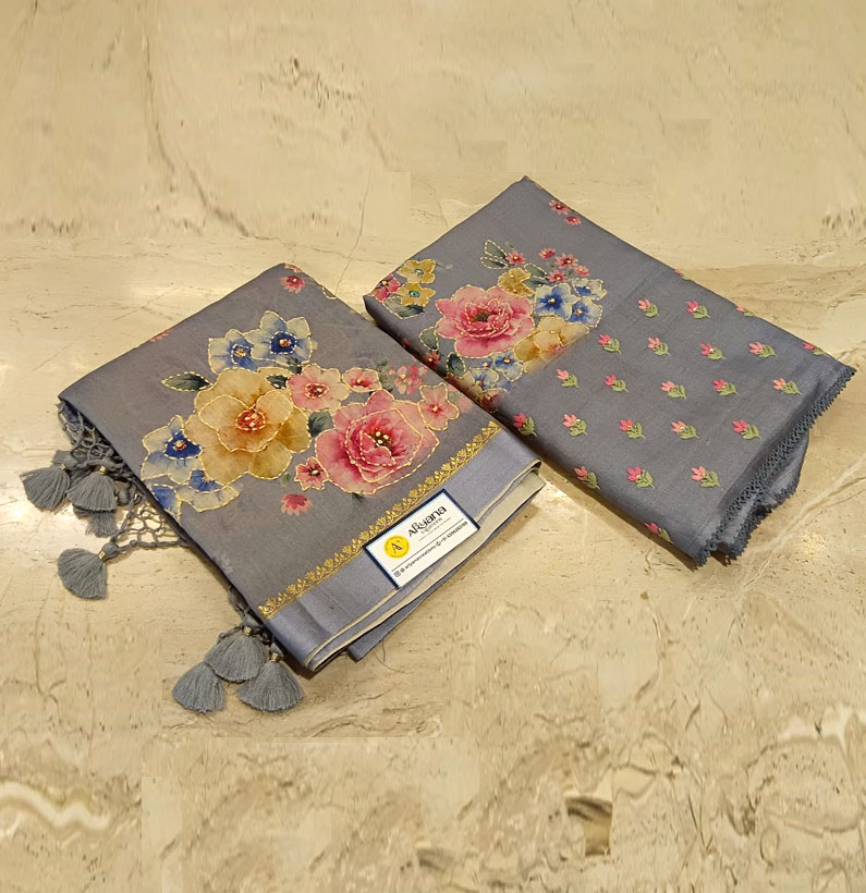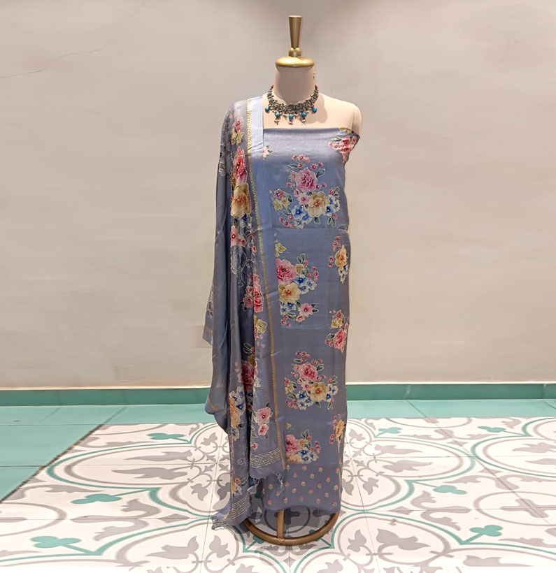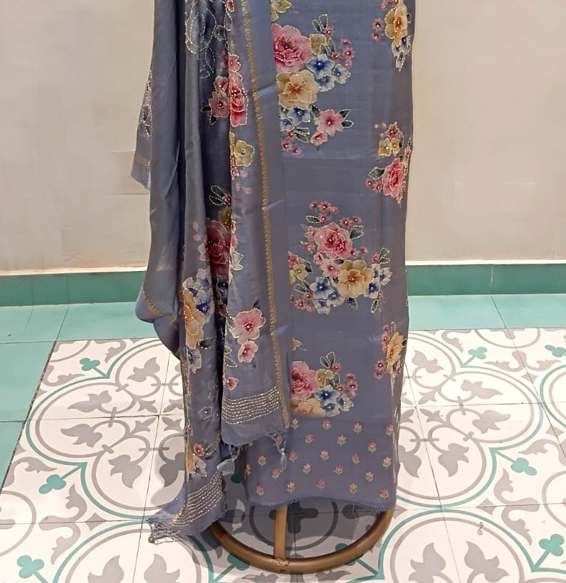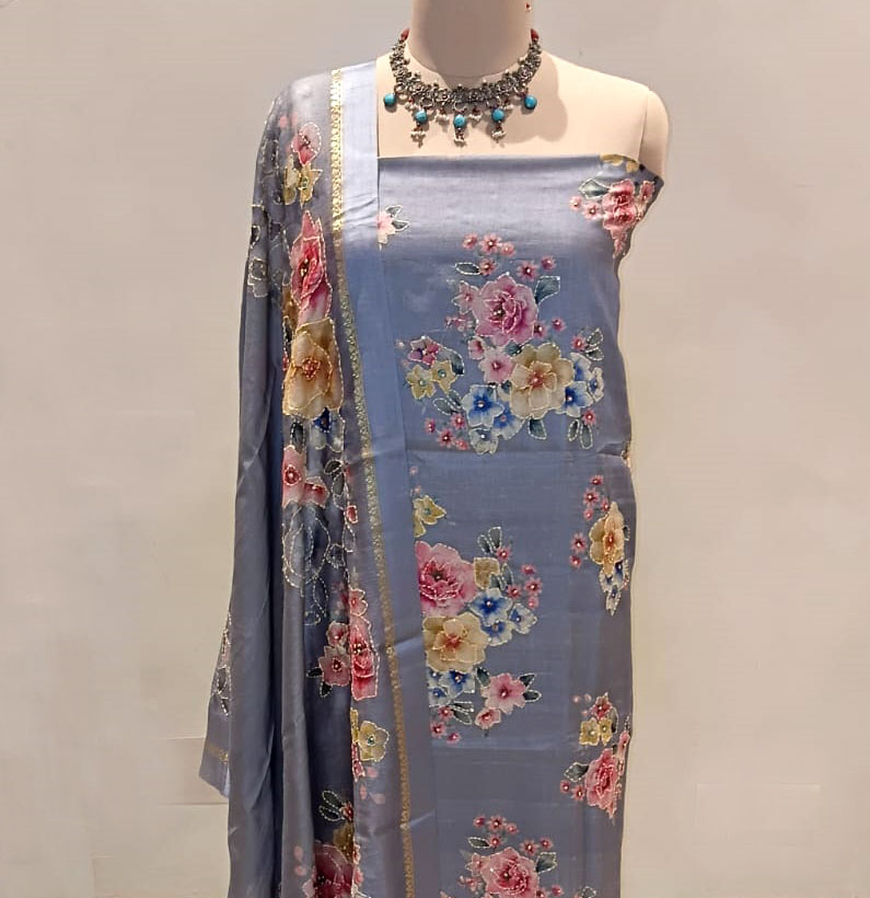 Be the first to review “Tussar embroided suit grey” Cancel reply