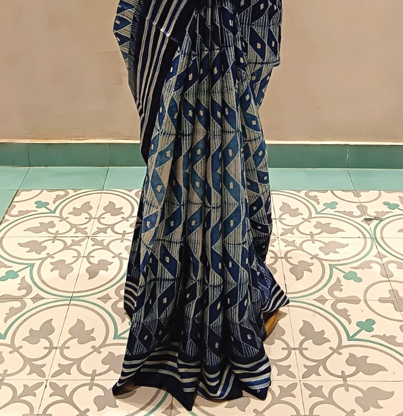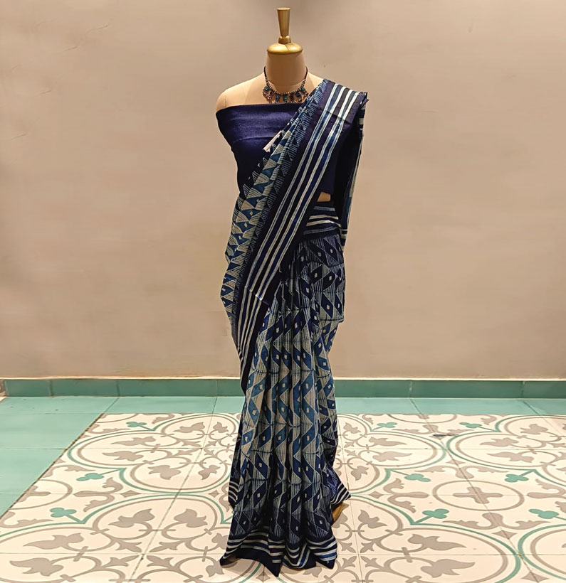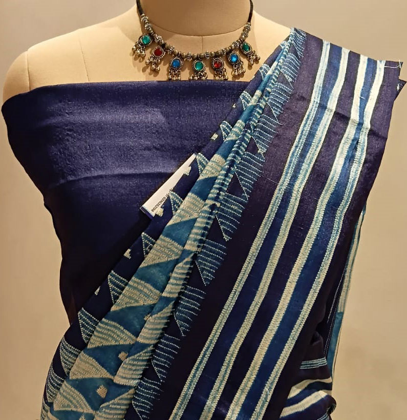 Tussar shibori saree navy blue
