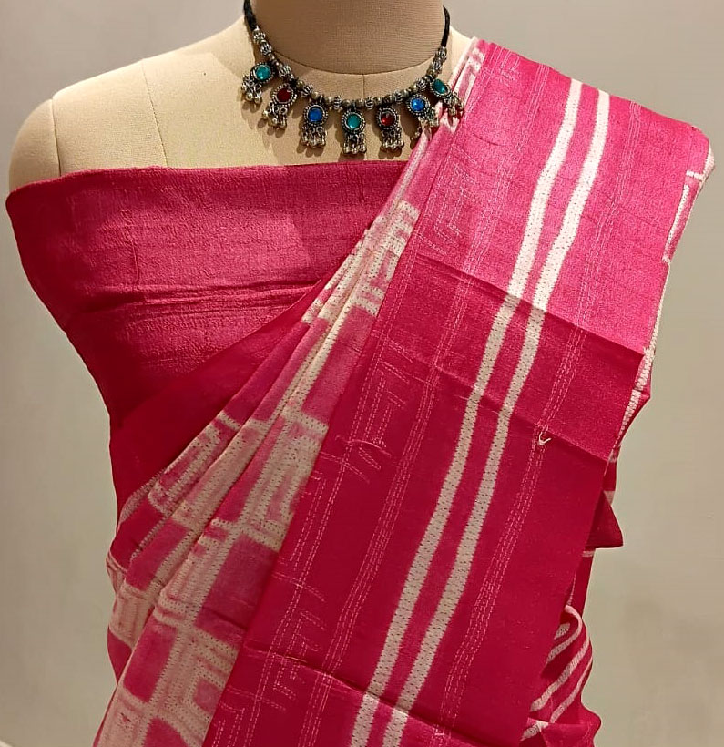 Be the first to review “Tussar shibori saree pink” Cancel reply