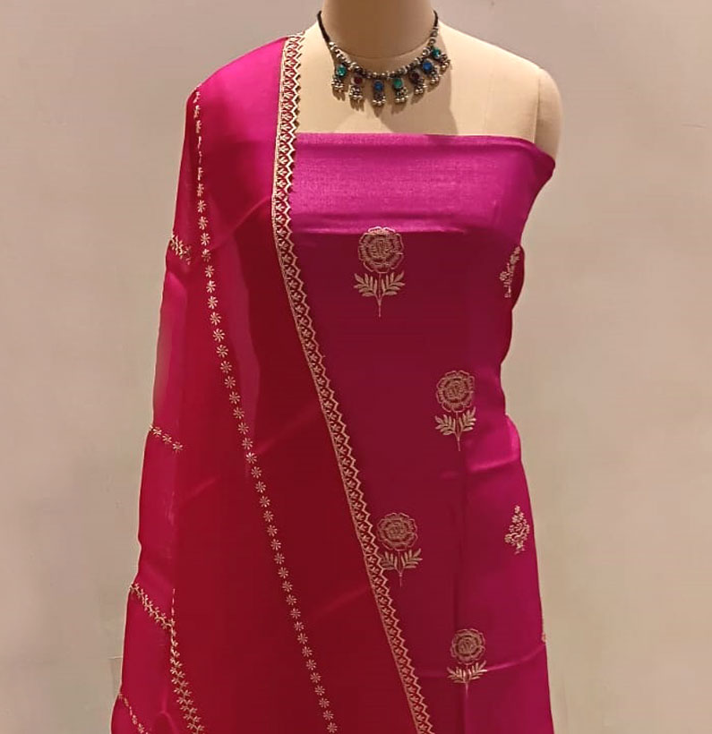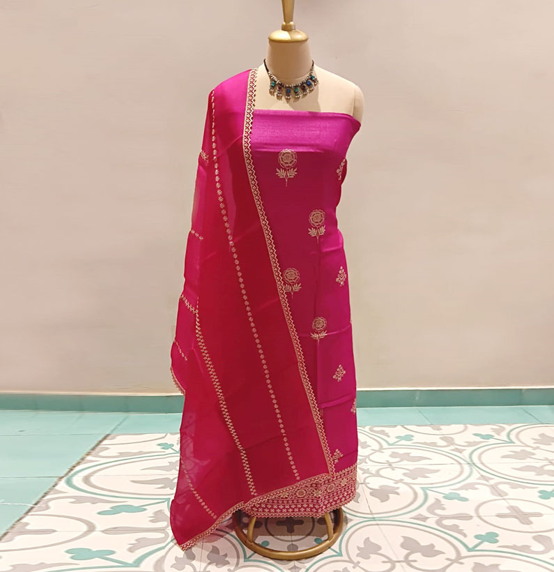 Be the first to review “Tussar silk embroided suit magenta” Cancel reply