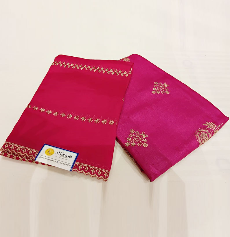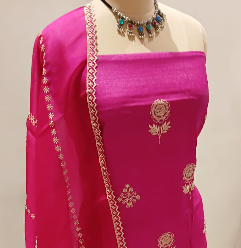 Home Suit Silk Tussar silk embroided suit magenta